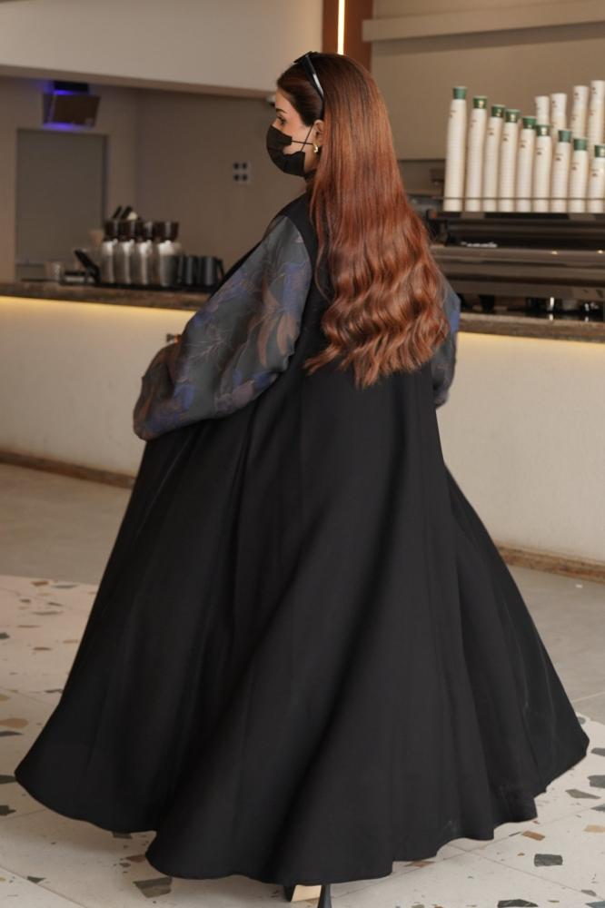 قصة العباية :ربع كلوش بحيث تعطي تميز بالتصميم واريحية تامة اثناء الحركة في يومك