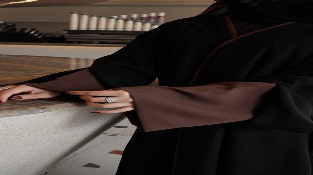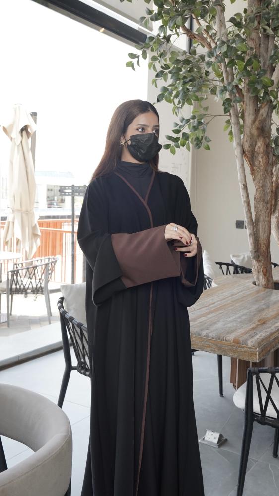 عباية بلون اسود وبني بتصميم جميل للغاية تعطيكي تفرد وتميز بالتصميم لا مثيل له