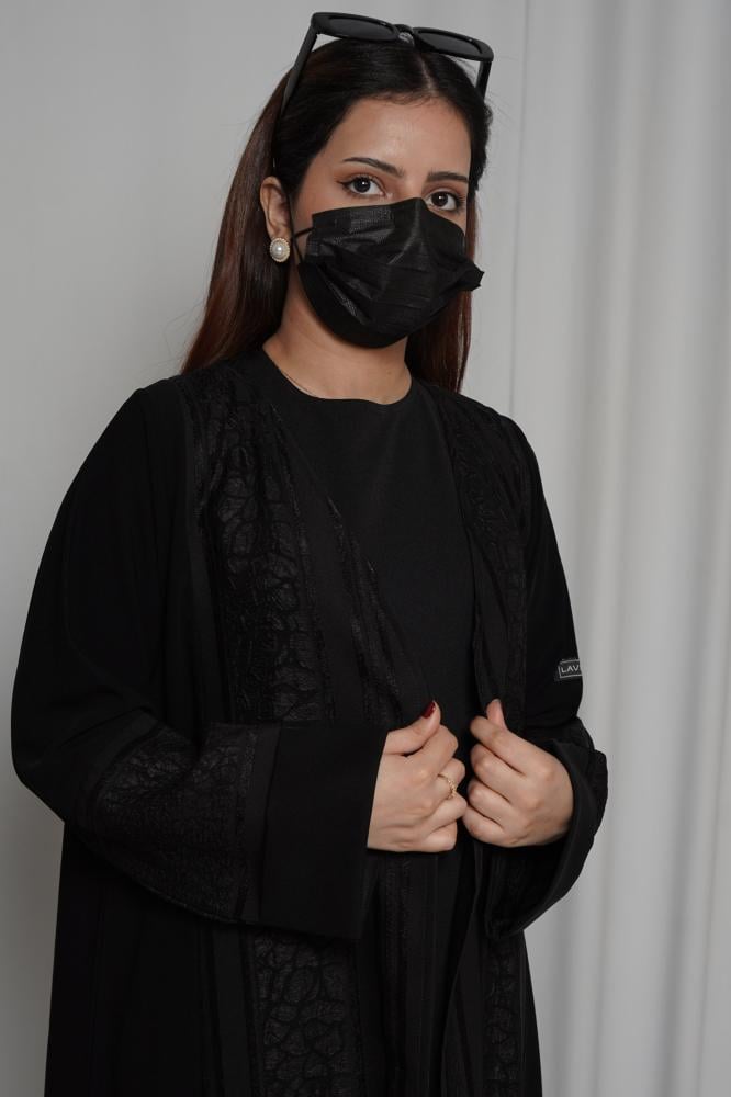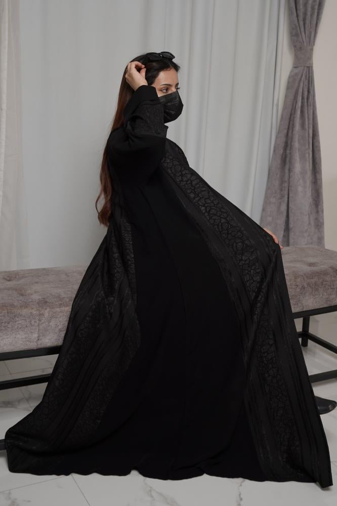 نوع القماش : كريب , وجاكار هندي , تعطي راحة اثناء اللبس وخفة لا مشيل لها ومن الاقمشة الجميلة وشديدة السواد وذو جودة عالية للغاية , كما ان القماش من مميزاتة عدم حاجتة للكوي وذلك يعني ان القماش عملي للغاية ومناسب للاستعال اليومي اذا كنتي طالبة او موظفة